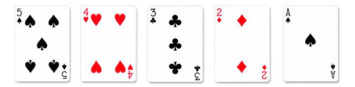 Also known as the 'bicycle' or 'wheel' – consisting of 5, 4, 3, 2 and Ace.