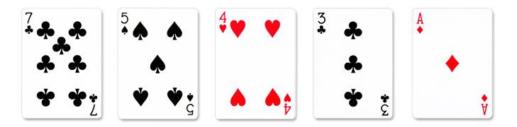 Tied Hand: If two or more Seven High exist at showdown, the lower second ranking card wins. The third, fourth and fifth highest ranked cards are used when necessary. If the hands are identical in rank, the pot is split.